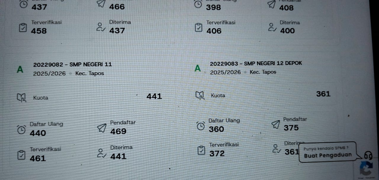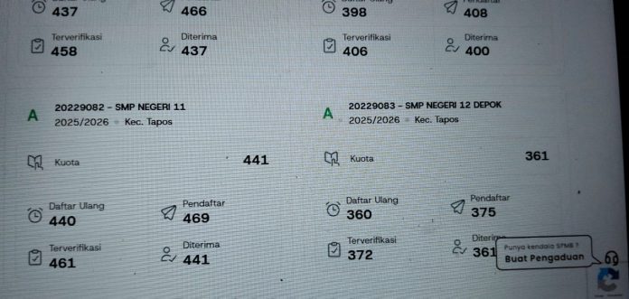 Menurut Gerry Saragih, Ketua LSM Penjara PN, bahwa website SPMB Depok 2025 mulai ‘berubah-berubah’ datanya Dan tidak sesuai dengan komitmen awal pengajuan Kuota per sekolah SMP Negeri di Kota Depok.