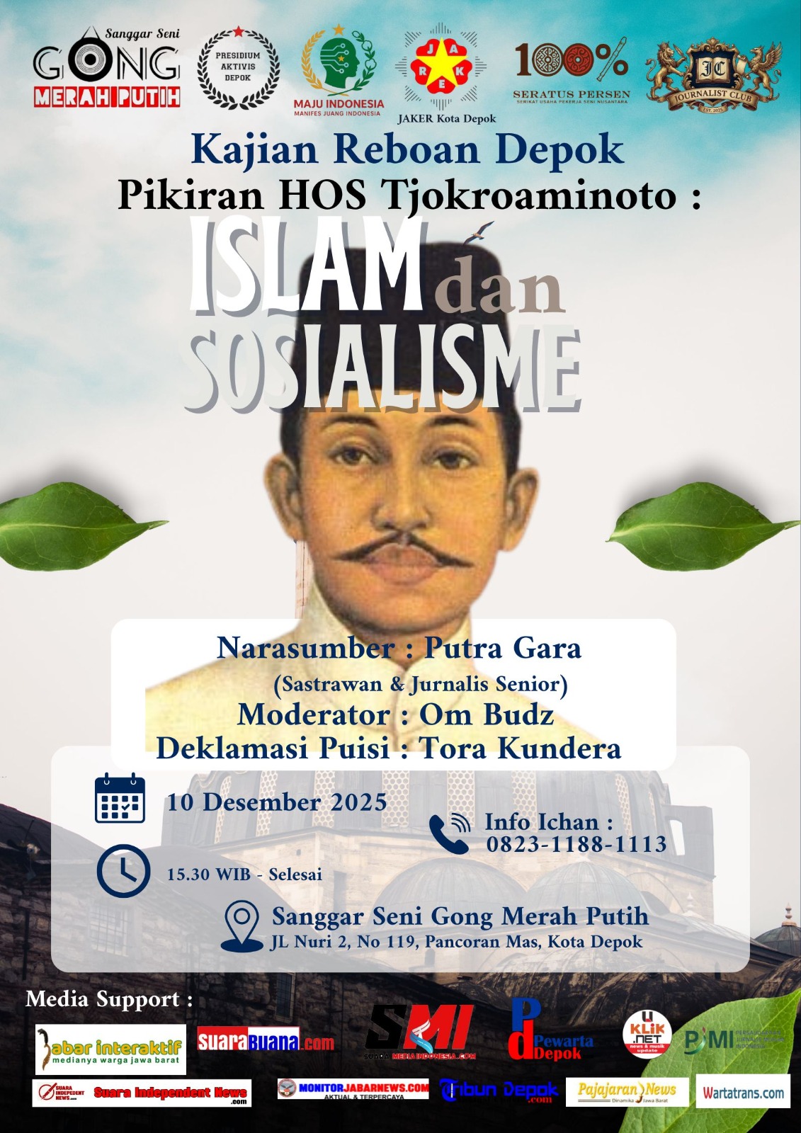DEPOK – Lembaga MAJU Indonesia bersama komunitas wartawan Journalist Club dan Perkumpulan Seni Gong Merah Putih menggelar Forum Kajian Reboan seri Pemikiran Guru-guru Bangsa untuk menguatkan kembali nilai-nilai kebangsaan kita khususnya bagi generasi muda saat ini.